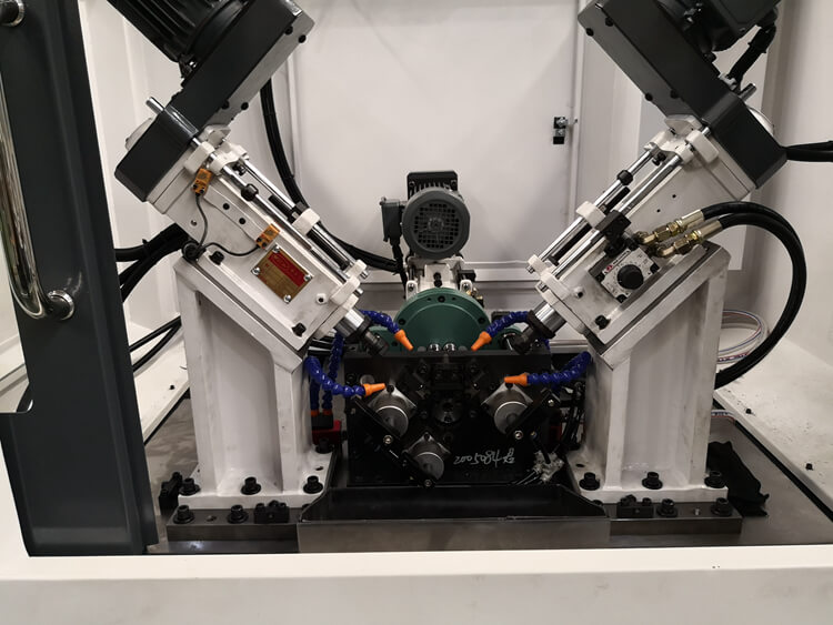 8458万彩网 公司可按客户加工工件设计各类专用机床。亦可设计上、左、右、后四方向同时加工钻攻铣等工序机床。